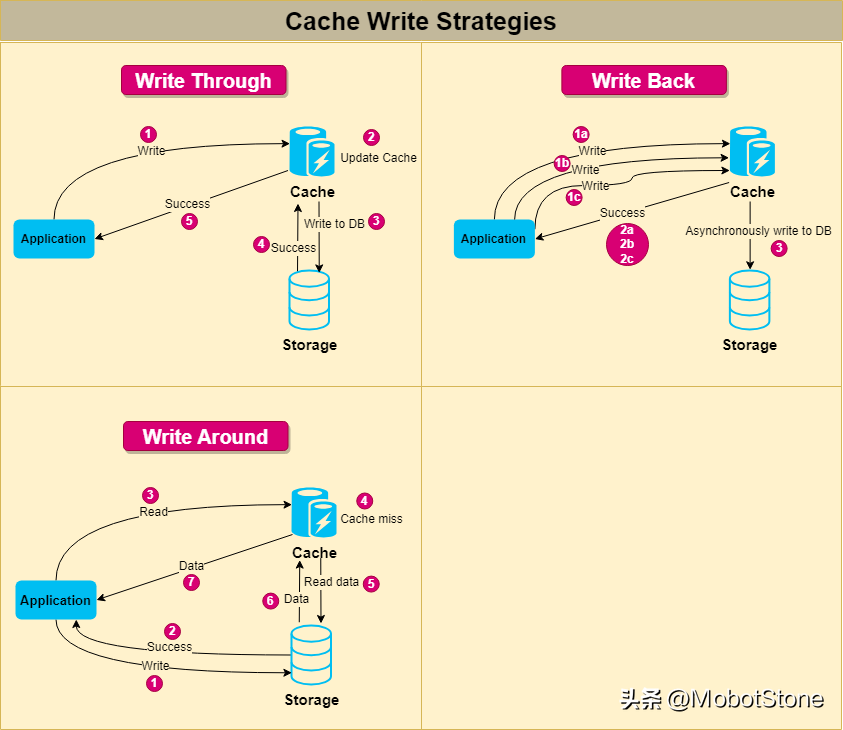 它与回写缓存非常相似。在这种方案中,数据被写入缓存并立即向应用程序确认,但并不立即写入永久存储。相反,写操作被推迟,数据最终在稍后的时间被写入永久存储。回写缓存和后写缓存的主要区别在于数据写入永久存储的时间。在回写缓存中,只有在缓存需要释放空间或发生某个事件时,数据才会被写入永久存储。而在后写缓存中,数据会在指定的时间间隔被写入永久存储。