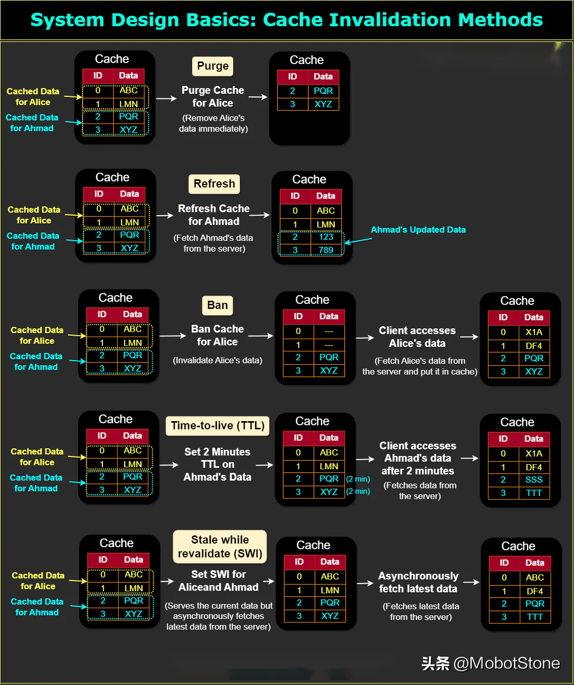 存在几种缓存失效策略,每种策略都有其优缺点: