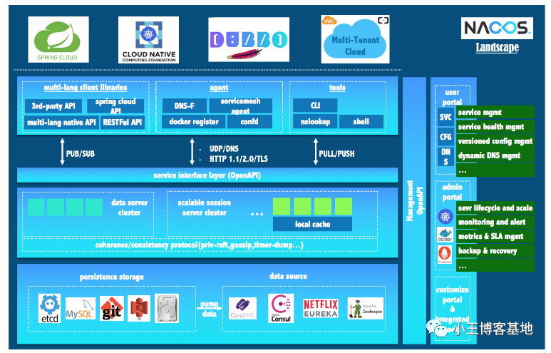 Nacos 能让您从微服务平台建设的视角管理数据中心的所有服务及元数据,包括管理服务的描述、生命周期、服务的静态依赖分析、服务的健康状态、服务的流量管理、路由及安全策略、服务的 SLA 以及最首要的 metrics 统计数据。