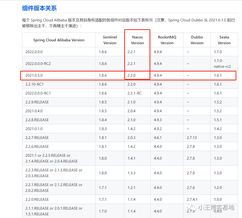 我们根据对照表来下载哈!由于我们使用的Springboot版本是3.0之前的,所以要引入SpringCloudAlibaba 2021.0.5版本的,这个版本的Nacos只能安装2.2.0的。所以我们不能安装最新版的Nacos2.2.3,当然你也可以试一下,看看是不是向下兼容。