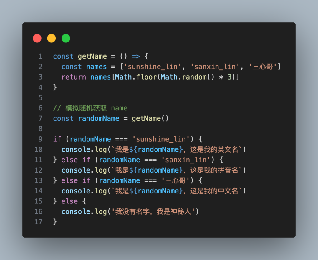 就比如下面的简单例子,根据 name 的不同的值,去执行不同的代码:
