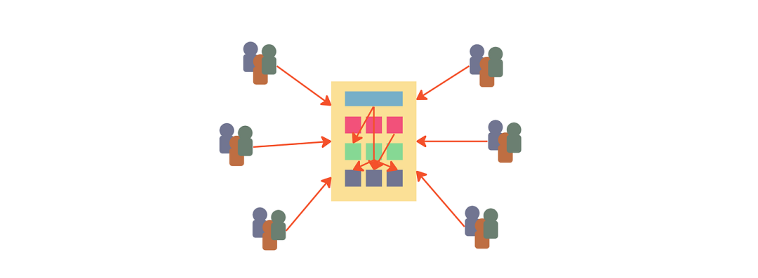 当您的团队看起来像上面的插图时,这表明您应该考虑演进您的架构到微服务。开发中的复杂性增加会高风险地降低质量,从而导致生产力减缓。这产生了一个矛盾的效果,即您雇佣的人越多,交付就变得越慢和不可预测。