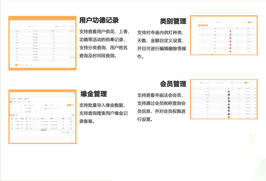 信众通过“结善缘”互联网供灯平台、寺庙现场智能硬件控制机,点亮殿内的智能祈福灯。除LED祈福灯所具有的能耗低、环保安全、供灯时长、数量多的优势外,更具有互联网科技时代的智能化、移动化等特点。将拉近寺庙和信众的距离,让信仰不仅在心里,更在身边,随时感受佛的智慧光明,让佛光普照更多信众。