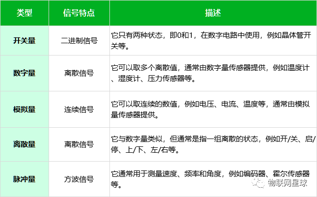 开关量、数字量、模拟量、离散量和脉冲量是电子测量和控制系统中经常遇到的不同类型的数据。它们在定义、特性和应用方面存在差异。在电子测量和控制系统设计中,根据实际需求选择合适的数据类型是至关重要的。