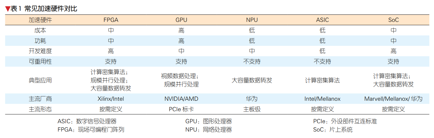硬件方案指通过将处理工作分配给加速硬件(协处理器)以降低中央处理器负荷,利用适合的加速硬件具有的处理优势可实现性能提升、成本优化的目的。