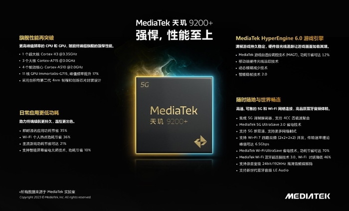 【天极网手机频道】5月10日下午,联发科正式了天玑9200+旗舰5G移动平台,在继承天玑9200的技术优势的同时,在性能、能效和游戏体验方面再次升级,赋能旗舰终端卓越移动游戏体验。
