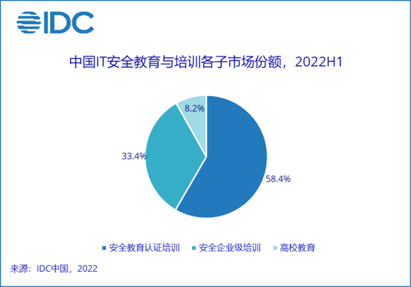 经过各技术服务提供商的不断努力,中国网络安全服务市场实现稳步增长,其增长主要由IT教育与培训和托管安全服务市场带动。其中认证培训和安全实训演练测试平台与服务市场,共同推动IT安全教育与培训市场上半年实现高速增长:上半年,IT安全教育与培训市场增速最快,规模同比增长达到33%。