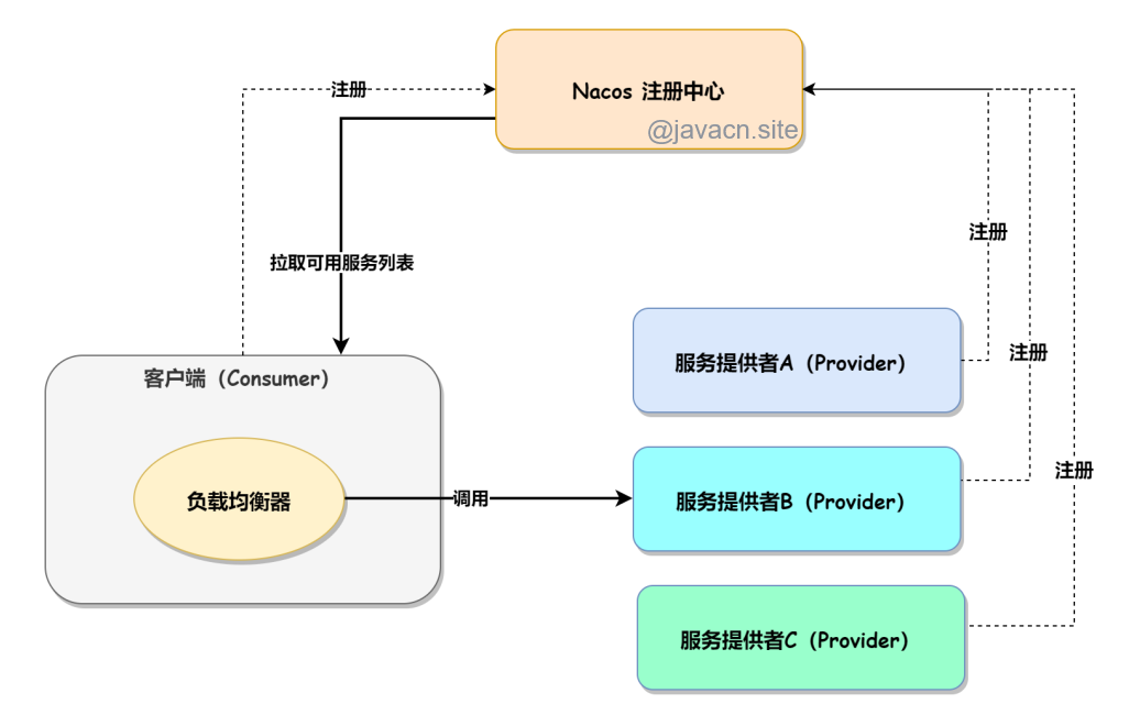 - 服务发现:服务消费者通过向注册中心查询服务信息,获取可用的服务实例列表。通过注册中心,服务消费者可以找到并连接到需要调用的服务。