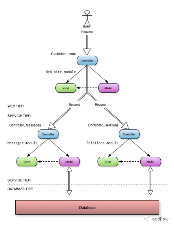 HMVC(全称Hierarchical-Model-View-Controller),也可以叫做 Layered MVC。顾名思义,就是按等级划分的 MVC 模式,简单的解释就是把MVC又细分成了多个子 MVC,每个模块就分成一个 MVC。