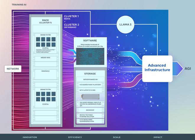 Meta表示,这种升级不仅在数量上有所增加,其性能上的跃进也将支持更大、更复杂的模型,为生成式人工智能产品的开发铺平道路。