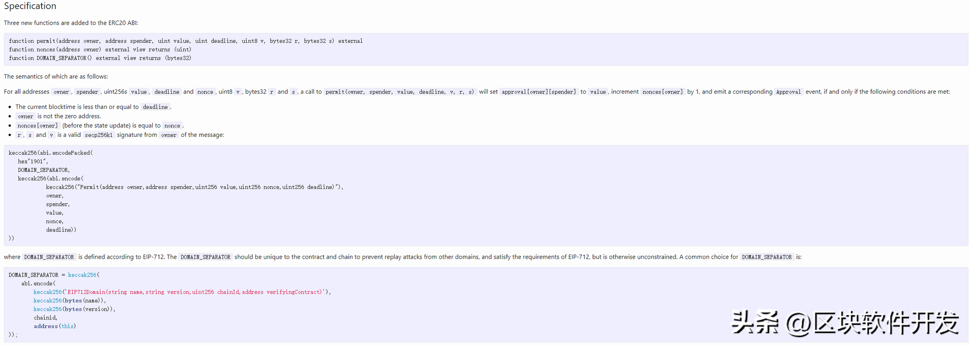 ERC20是在以太坊上面创建token的实现标准,但是它并不支持元交易,如果token需要支持授权元交易,则需要按照EIP-2612的规范来进行扩展,如下:
