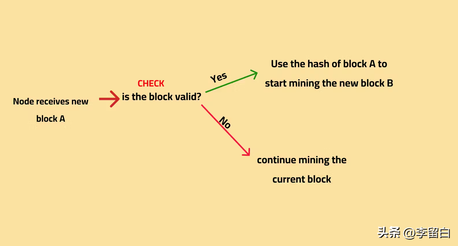 所以整个过程是这样的:节点收到最新的区块,并根据规则进行测试。如果该块有效,则节点在引用最新块的同时开始创建新块的过程。