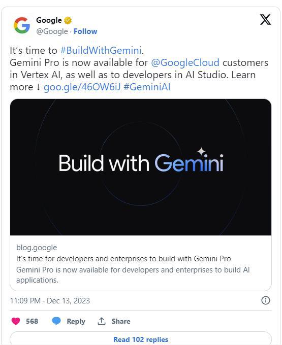 谷歌云客户可以使用Gemini Pro创建人工智能聊天机器人、易于查询的库存数据库以及营销演示等应用程序。该公司还强调,Gemini Pro最初将免费提供给云客户,但有一些限制。不过,谷歌表示,最终计划确保其云人工智能产品的“价格具有竞争力”。