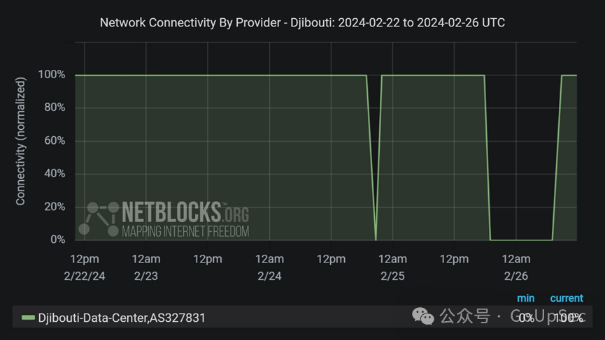 根据Netbocks的监测,吉布提数据中心在经历数小时的网络连接中断后已经恢复正常: