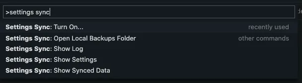 在命令面板中搜索设置同步