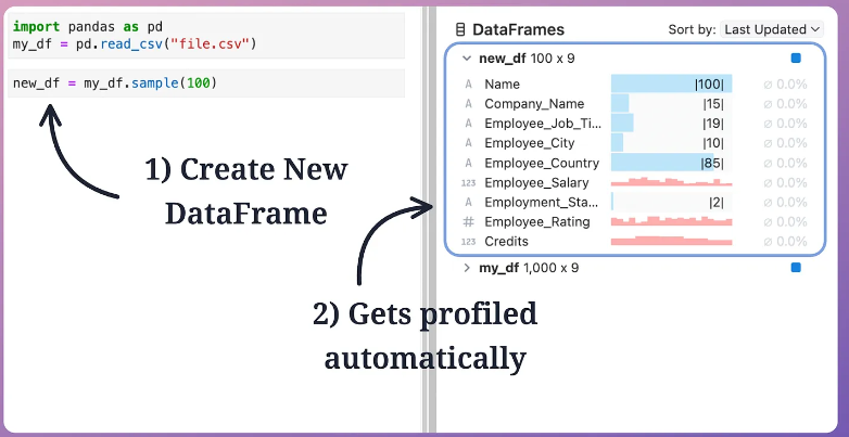 此外,如果您创建一个新的DataFrame(例如从现有的DataFrame派生),AutoProfiler也会自动对其进行分析,以提供相应的分析结果。