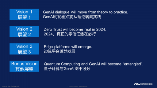 John Roese提到,“整个2023年充斥着对零信任及其在全球网络安全工作中重要性的讨论。2024年,零信任不再只是一个热门话题,我们将更注重落实真正的技术、标准乃至认证,从而明确什么才是真正的零信任。”