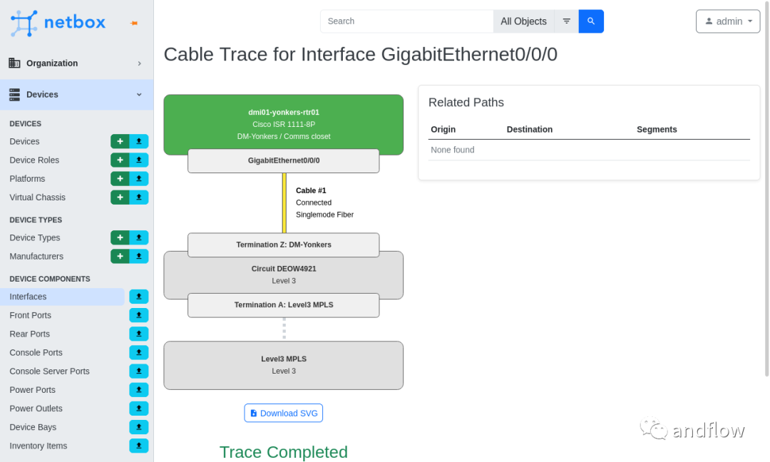 NetBox由DigitalOcean的网络自动化团队开发,提供IP地址管理(IPAM)、机架管理、设备可视化、电缆管理和设备跟踪等全面功能。它可以简化数据中心运维、优化资产跟踪和管理,提高管理效率。此外,NetBox提供了友好的Web界面和强大的API,允许定制化开发,可以与现有系统无缝集成。同时,该工具还为工程师提供了全面的支持文档。是工程师的首选。