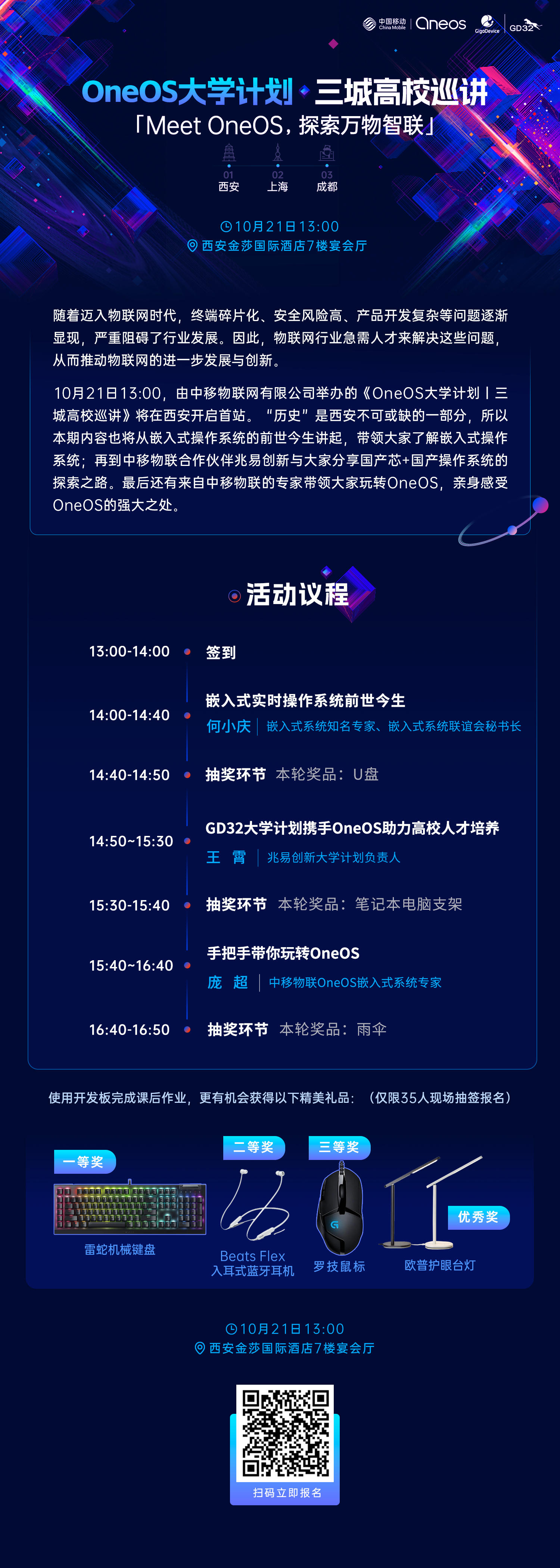 点击这里或扫描下方海报二维码立即报名《OneOS大学计划丨三城高校巡讲》西安站!