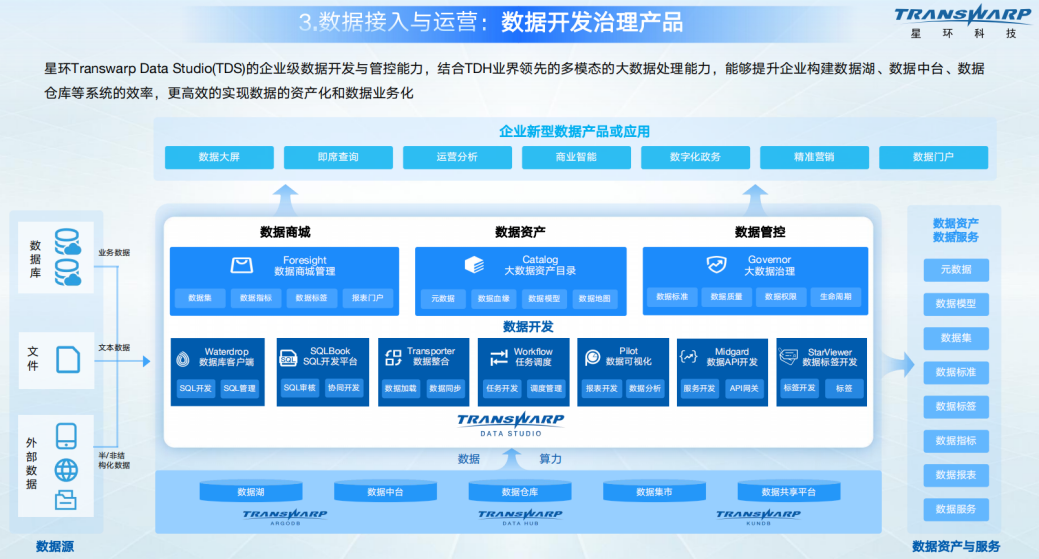 星环科技:数据中台让企业高效数据驱动,适配企业主营、创新、孵化业务快速变化,支撑企业数字化转型。通过统一底层架构,统一数据治理,统一数据服务,以及个性化数据应用,最终实现整个企业数据资产化、资产价值化、价值个性化。