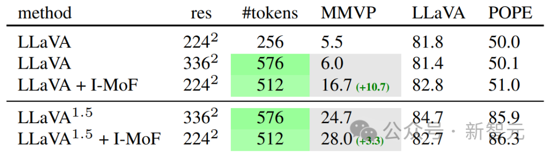 「交错特征混合(Interleaved-MoF)」显著增强了视觉基础能力,在MMVP基准中获得了10.7%的能力增强,同时还不影响模型遵循指令的能力。
