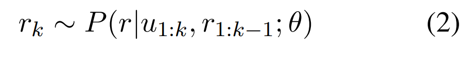 对话型人工智能的目标是设计一个能够生成引人入胜、富有娱乐性的对话系统,供人们进行交互。设 uk 表示用户的第 k 轮对话,其中每个用户轮次是一个单词序列,uk = (w (k) 1 . . . , w (k) |uk| )。同样地,设 rk 表示系统生成的第 k 个响应,也是一个单词序列,rk = (w (k) 1 , . . . , w (k) |rk| )。作为一种隐式语言模型,一个特定的对话型人工智能,参数化为 θ,在给定先前对话历史的情况下,建模预测下一个响应出现的概率。