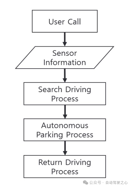 目前自动泊车系统当中主要包括三部分的内容,如下图所示,分别是搜索驾驶过程,自动泊车过程以及返回驾驶过程。我们先对每个过程做一个大致的介绍,然后再介绍每个过程目前各自的发展趋势。