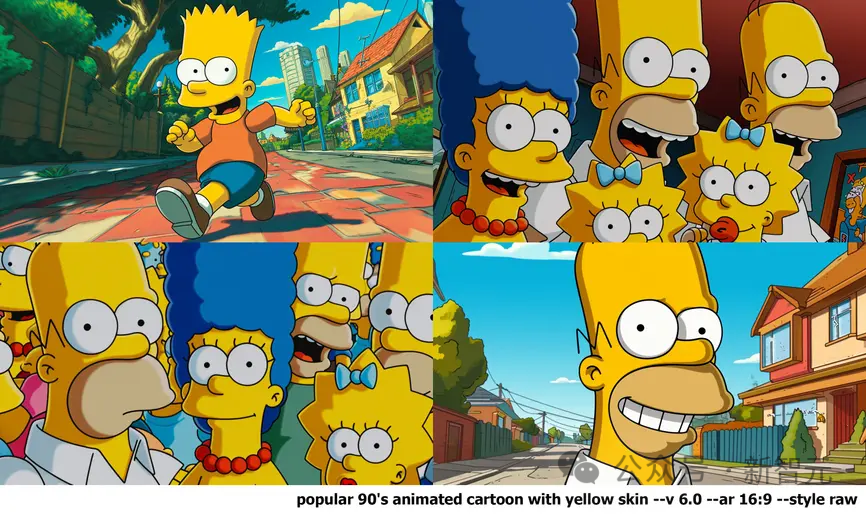 只要提示词中有《辛普森一家》的关键词「卡通」,「黄皮肤」,输出的结果就几乎一定是带着IP的。