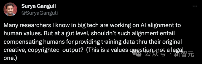 但从本质上讲,这种对齐难道不应该补偿人类通过其原创的、受版权保护的输出提供训练数据吗?(这是一个价值观问题,而不是法律问题。)